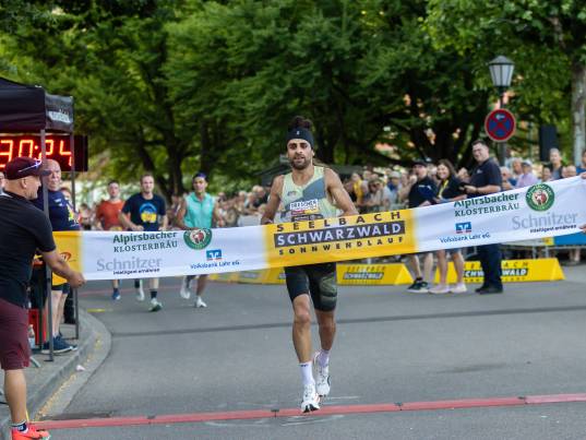 Das Hauptfeld war dabei einmal mehr gespickt mit namhaften Topathleten aus der gesamten Region sowie vielen Hobbyläuferinnen, die sich die sehenswerte Schleife quer durch den Luftkurort nicht entgehen lassen wollten. Kurz vor dem Startschuss war die Spannung im Start- und Zielbereich bei der Seelbacher Sporthalle förmlich greifbar, Hunderte Besucher hatten sich hinter den Absperrungen und über die gesamte Strecke verteilt, um die Athleten lautstark anzufeuern und den besten Blick auf das Lauffeld zu erhaschen. Bei den Herren lieferten sich erwartungsgemäß die beiden Topfavoriten Omar Tareq und Simon Stützel von Beginn an einen packenden Zweikampf, Platz drei nahm vom Start weg Lukas Borghardt vom TV Bad Säckingen ein.